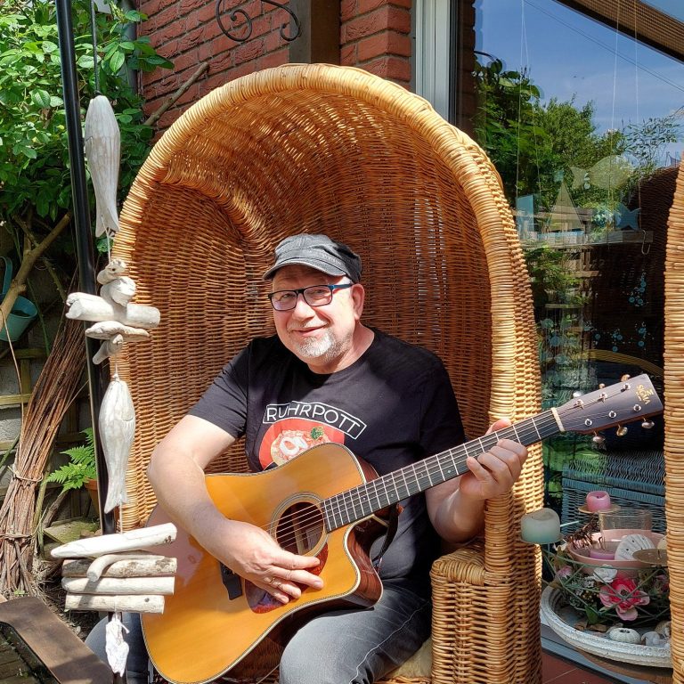 Nach langen Jahren der Musikabstinenz komme ich nun in meiner 3. Lebenshälfte zurück zu den alten Wurzeln. Ich mache wieder Musik! Allerdings solo und in einer ganz anderen Musikrichtung als früher, denn als Bassist konnte ich nicht gleichzeitig singen, also musste nun die Gitarre wieder her. Angefangen hat es mit Volksmusik und alten Schlagern, die ich mir erarbeitet habe, um die Damen und Herren im Seniorenheim zu erfreuen. Hier habe ich wieder gemerkt, dass man Menschen mit Musik beschenken, ihnen etwas geben kann. Für die „jüngere Generation“ sind dann die Liedermacher der 70er bis 90er Jahre ins Repertoire gekommen, nicht zuletzt als Resultat der sich zuspitzenden politischen Situation. Hier ist das (Wieder)Erkennen und Mitsingen für alle Beteiligten ein gelungener Teil eines Auftritts. Inzwischen habe ich aber auch selbst zum Stift gegriffen und bringe Akkorde und Lieder zu Papier, die sich auch in Richtung „Liedermacher/Pop“ bewegen. Ich schreibe auf Deutsch und mir ist wichtig, dass meine Songs keine Selbstgespräche sind, sondern, dass sich Andere in ihnen wiederfinden. Sie werden untermalt mit folkigen Gitarren Parts und Melodien, die im Kopf bleiben. Mit Texten, mitten aus verschiedenen Situationen des Lebens gegriffen, die zum Zuhören und Mitmachen anregen.